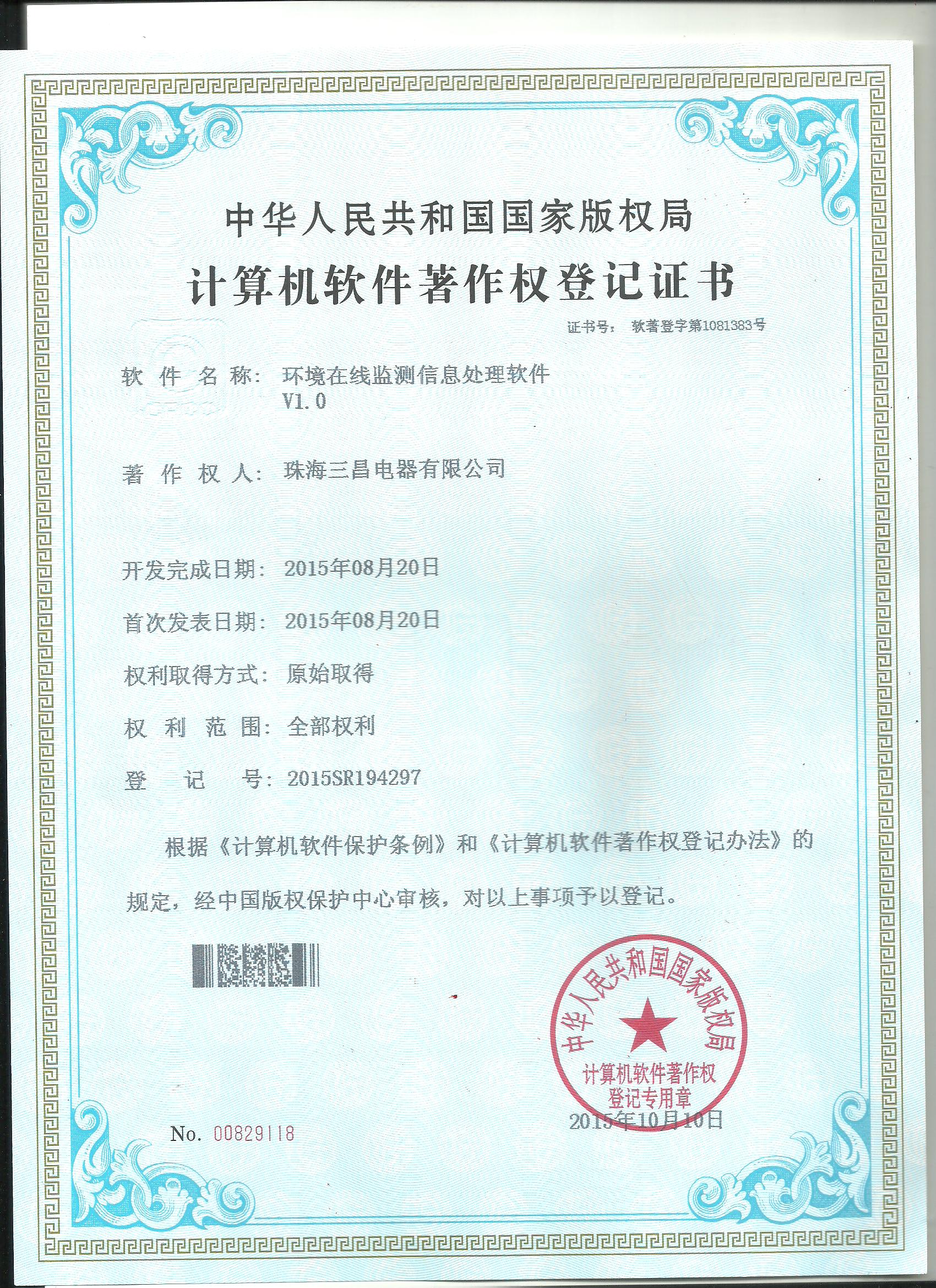 計(jì)算機(jī)軟件著作權(quán):環(huán)境在線監(jiān)測...