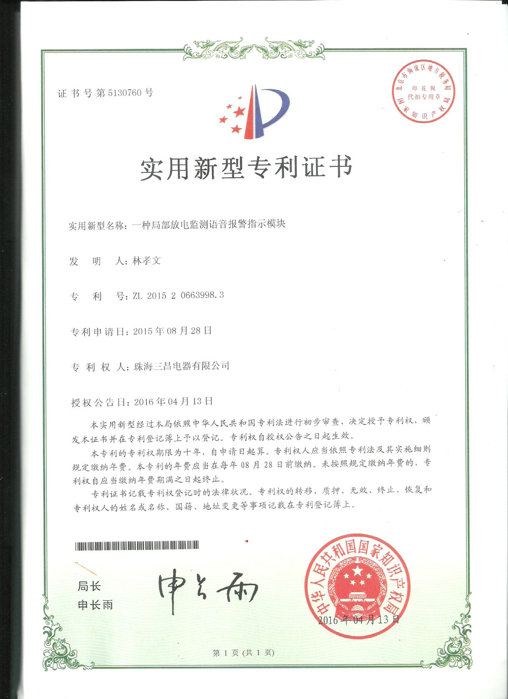 實(shí)用新型專利:一種局部放電監(jiān)測...