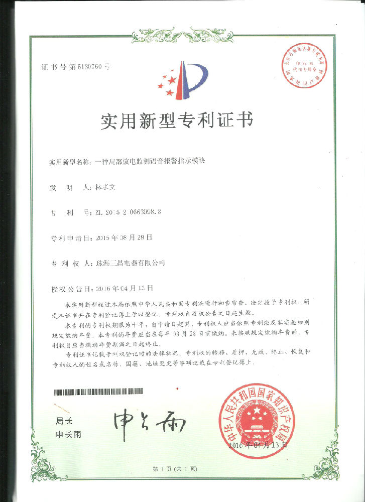 實(shí)用新型專利:一種局部放電監(jiān)測(cè)語(yǔ)音報(bào)警指示模塊