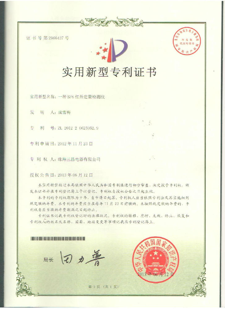 實(shí)用新型專利:一種SF6紅外定量檢漏儀