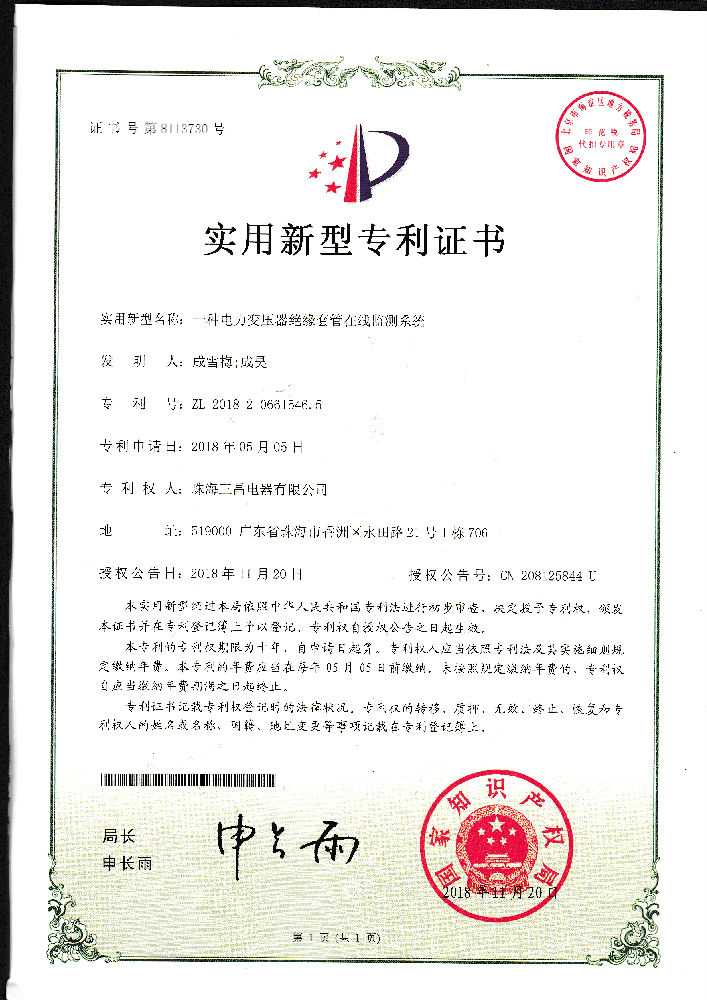 實用新型專利:一種電力變壓器絕緣套管在線監(jiān)測系統(tǒng)