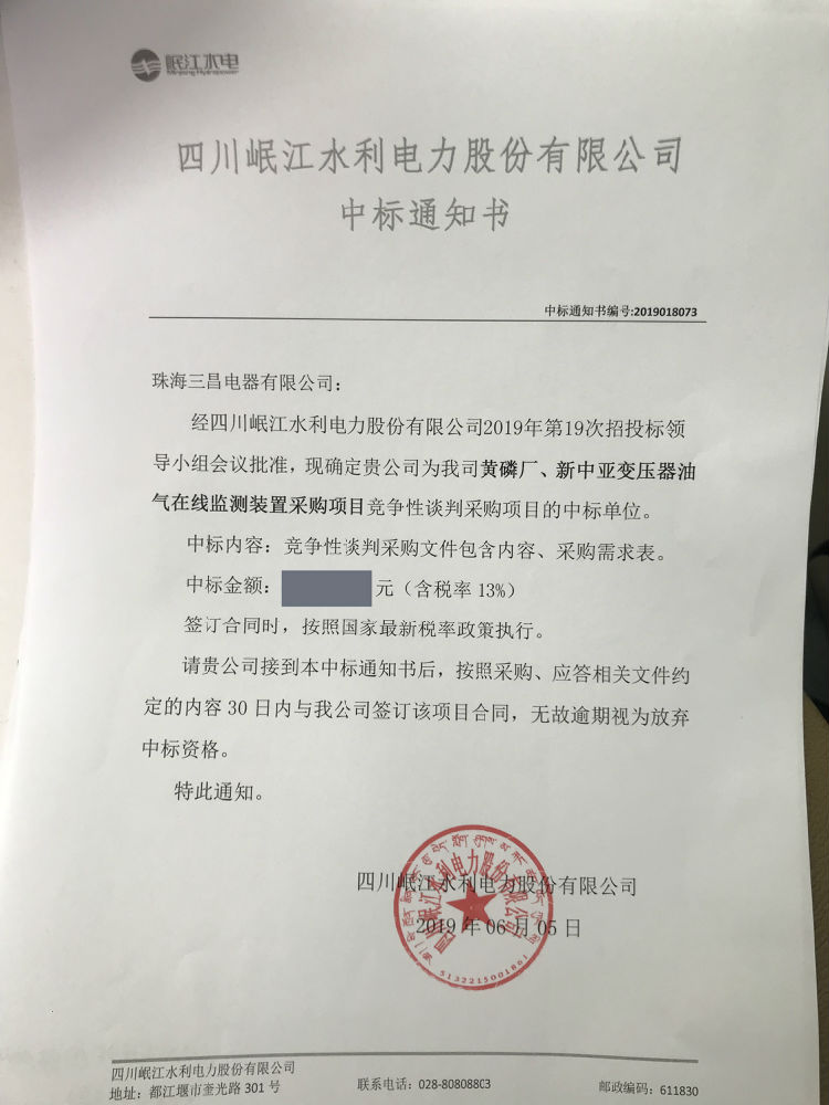 2019四川岷江水利電力股份有限公司變壓器油色譜中標(biāo)