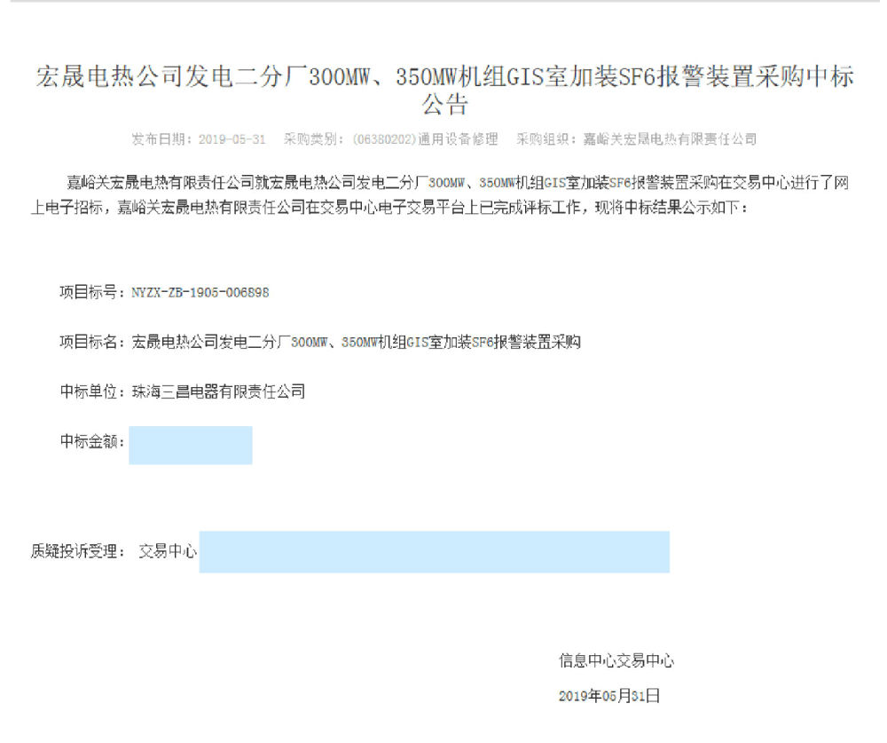 2019嘉峪關(guān)宏晟電熱公司中標(biāo)公告
