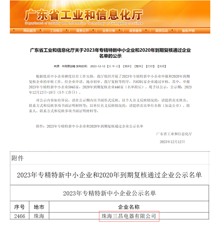 我公司通過2023年專精特新中小企業(yè)復(fù)核名單公示